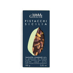 Silky and flavorful dark chocolate (61%) meets amazing carefully Sicilian Pistachios from Bronte in this delightful bar! Crafted by the famed chocolatier, Giraudi in Piemonte.